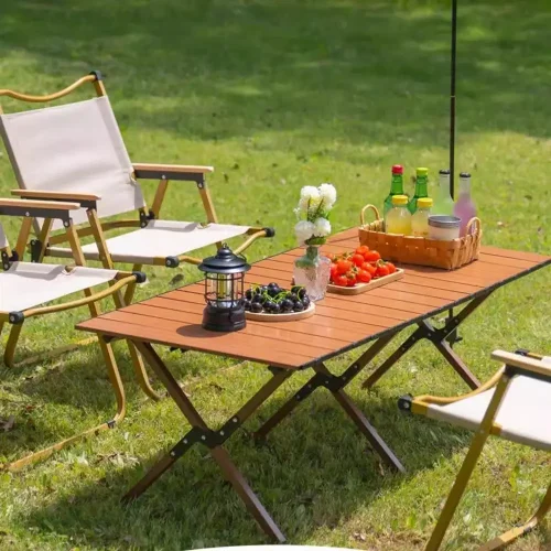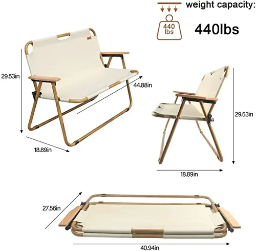 Outdoor Portable Beach Chair Aluminum Alloy Wood Grain Metal Double Folding Chair Camping Chair