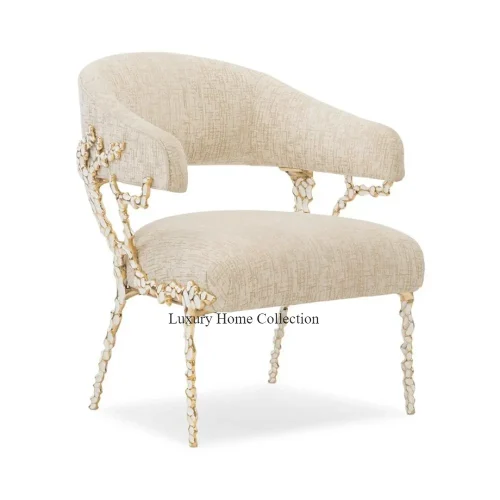 Vintage Stylish Metal Gold Color Outdoor Furniture Chairs Glitter Designer With Arms Rest & Back Rest Cushion Large Sitting Area