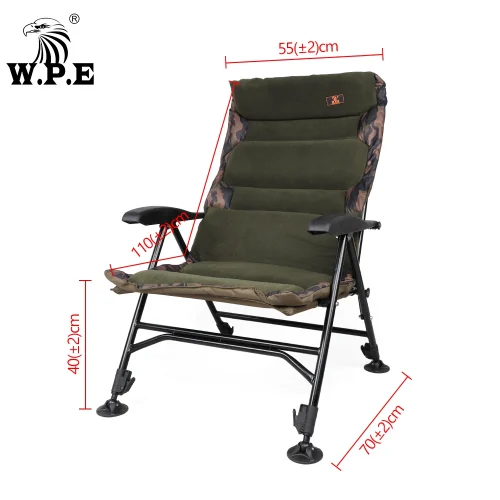W.P.E New Adjustable Armrest Outdoor Fishing Feeder Thick Green Chair Foldable Portable Carp Cup Holder Bait Table Chair