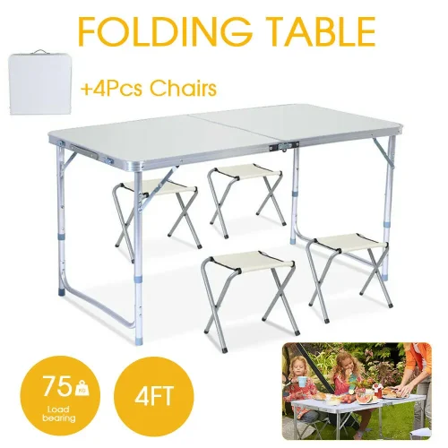 Adjustable Height 4-Person Portable Camping Table and Chair Set for Outdoor Patio Lawn Garden