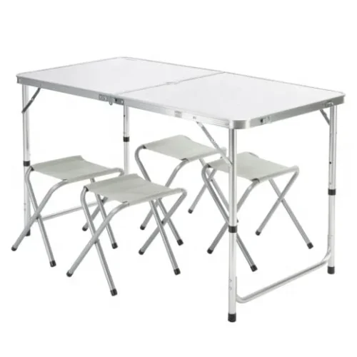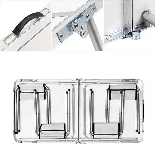 Aluminum Lightweight Camping Foldable Dining Table Set Modern Outdoor White Folding Chair Table Set of 4 With Umbrella Hole