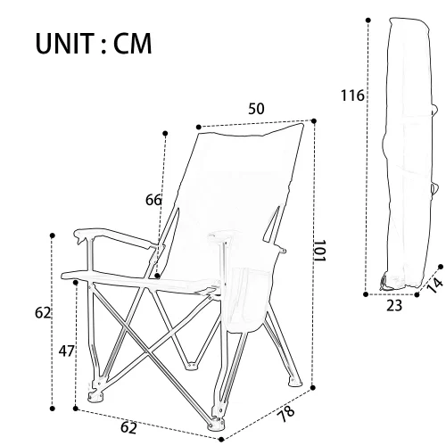 Beach Chair Foldable Recliner Camping Portable Chair With Adjustable Back and Armrest for Outdoor Use