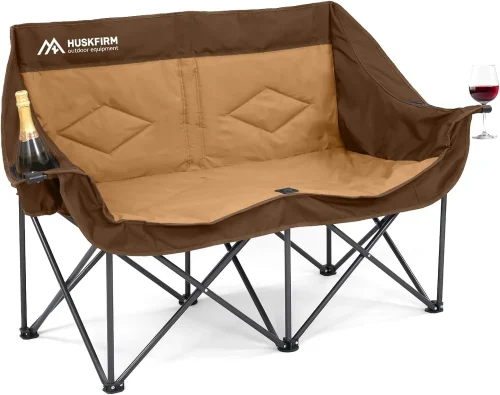 Brown Heavy-Duty Outdoor Camping Loveseat Chair for Adults Double Oversized Portable Folding Chair with Cup Holders Lawn Camp