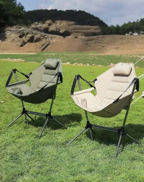 Custom Aluminum Alloy Outdoor Folding Portable Fishing Padded Swinging Camping Rocking Chair
