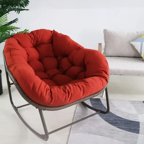 Deluxe Patio Rocking Chair Oversized Rattan Egg Rocking Chair Padded Cushion Rocker Recliner Chair