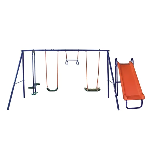 Fantastic Playground Metal Swing Set Chair, Swing with Slide Set, Outdoor Swing Set