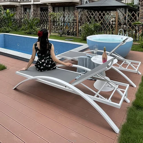 Fabric Sun Lounger With Adjustable Back,Beach Outdoor Swimming Pool Folding Sun Lounger Chair