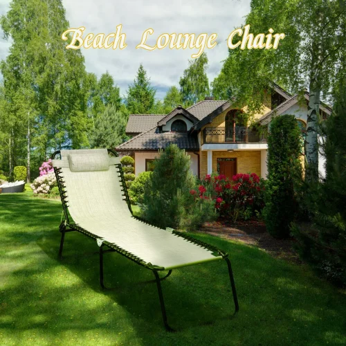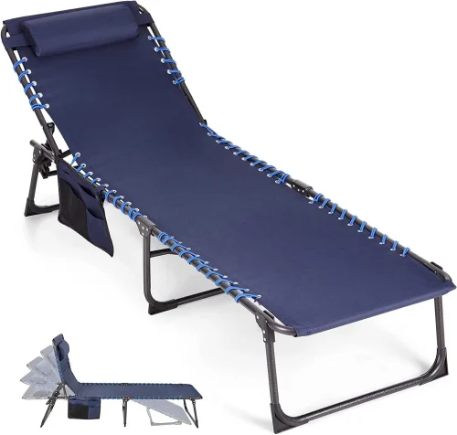 Folding Chaise Lounge Adjustable Camping Bed Beach Poolside Recliner Fast Drying Portable Ultra Light with 4-Position Backrest