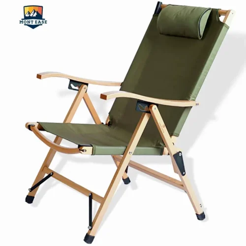 Kermit Outdoor Folding Portable Leisure Solid Wood Recliner Camping Beach Camping Chair with Pillow