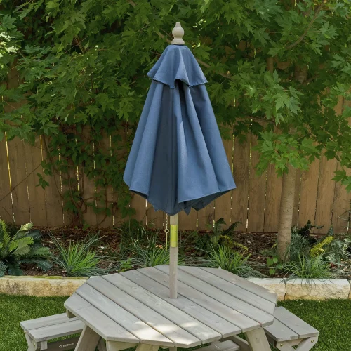 Kids Outdoor Furniture Wooden Octagon Table Stools Umbrella Picnic Chair and Table Set Camping Table Bbq
