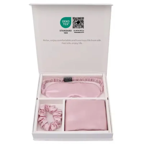 22MM Silk Pillow Case Set With Oeko-tex 6A Grade Mulberry Eyemask and Scrunchies Set Silk Pillow Case