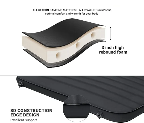 3D Shaped Outdoor Camping Self-Inflating Mat Double Size High R-value Inflatable Sleeping Pad