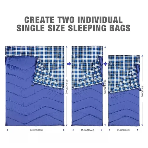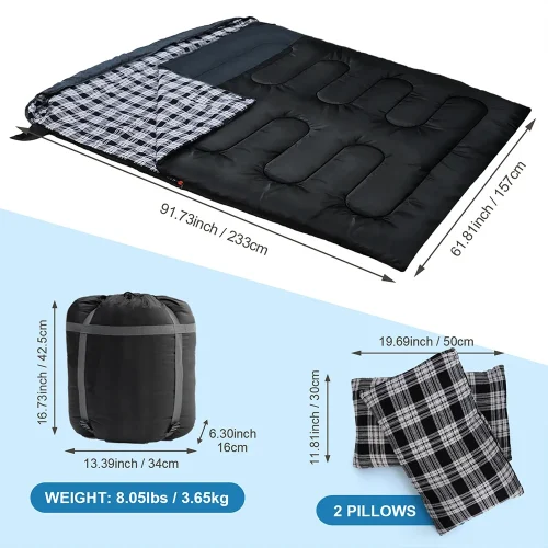 Adults 2 Person Sleeping Bag Portable Double Person Camping Hiking Sleeping Bag With Two Pillows