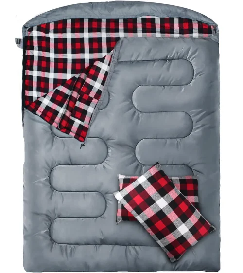 Adult Double Sleeping Bag with Flannel and 2 Pillows, 2-person Camping Large Sleeping Mat, Suitable for Cold Weather
