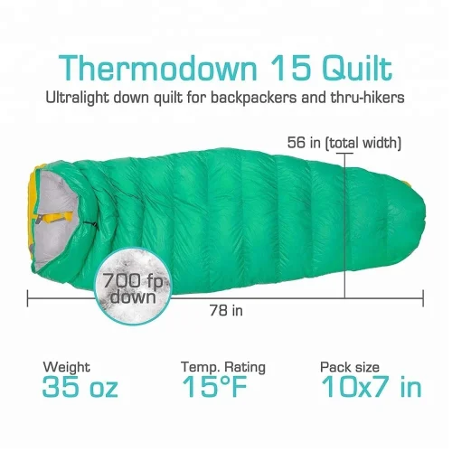 15 Degree Ultralight Backpacking TopQuilt Hammock Topquilt Down Blanket Sleeping Bag