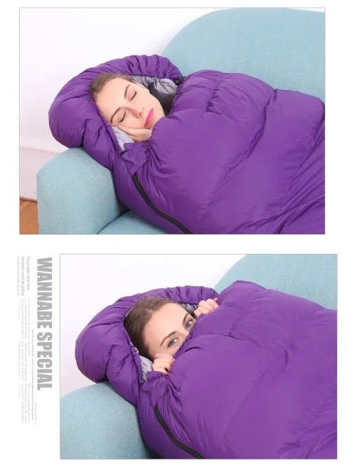 Winter Mummy Sleeping Bag Outdoor Camping Traveling Indoor Thick Warm Can Be Double Camping Lunch Nap Duck Down Sleeping Bag